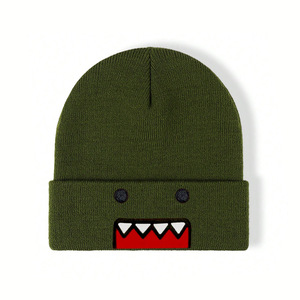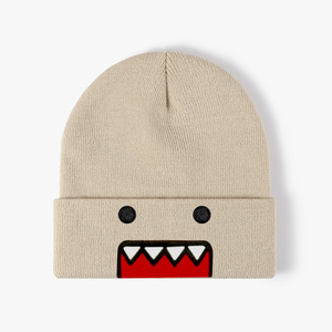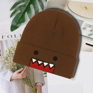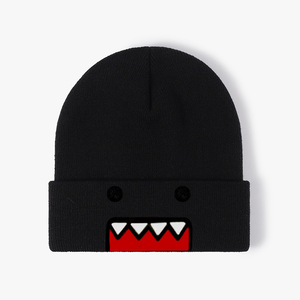 欧美跨境潮流ins多摩君卡通刺绣针织帽男女同款保暖防风嘻哈帽