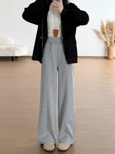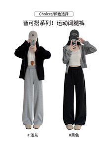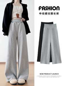 美式中线螺纹翻腰阔腿裤春秋松弛感百搭高腰显瘦垂感拖地休闲长裤