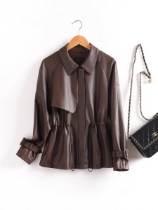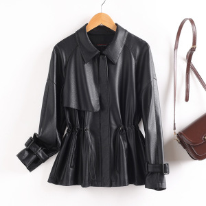 2025新款海宁皮衣女装机车短款翻领通勤皮夹克收腰显瘦单皮外套