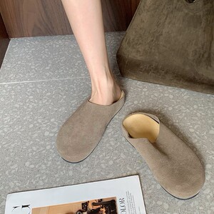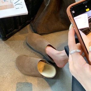羊皮版~复古风真皮厚底勃肯鞋女一脚蹬懒人包头半拖鞋穆勒凉拖鞋