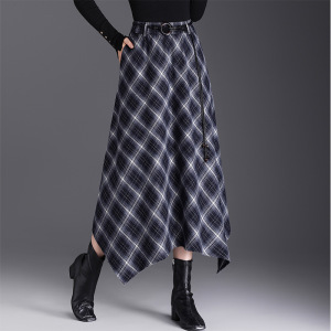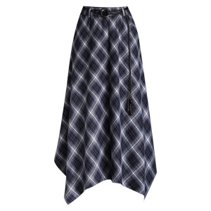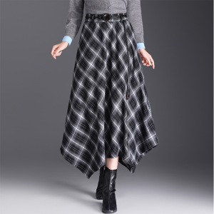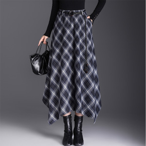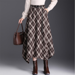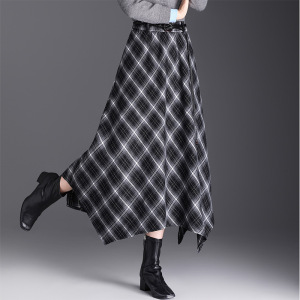 实拍不规则格纹半身裙女2025秋冬复古格子松紧腰显瘦中长款a字裙