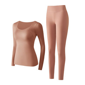 秋冬超薄免穿文胸秋衣秋裤女带胸垫打底衫肌底美肤衣保暖内衣套装