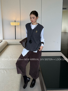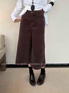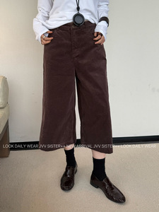 JVV十三行2025秋冬新款复古阔腿七分裤百搭灯芯绒休闲裤女潮90653