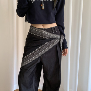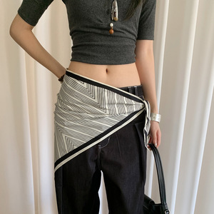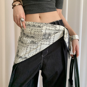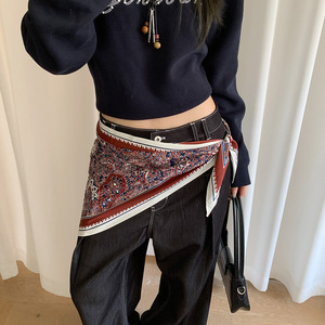 复古高级感民族风印花屁帘女小众叠戴配裙子牛仔裤三角丝巾配饰潮