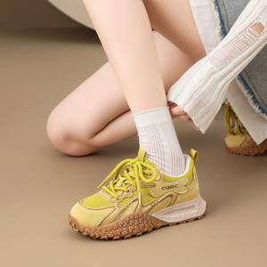 ZHR则则真皮拼接网面透气德训鞋2025秋季休闲增高3.5cm舒适运动鞋