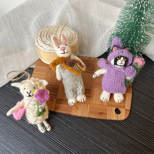 尼泊尔手工羊毛毡包包挂件ins风可爱小羊兔子猫咪学生书包挂饰
