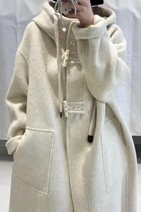 秋冬新款韩系宽松高级感双面羊绒大衣女牛角扣连帽羊毛呢外套