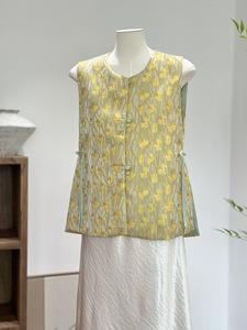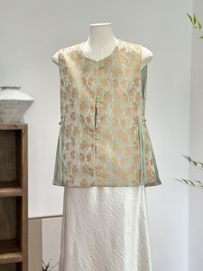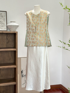 新中式刺绣提花马甲女减龄设计感秋季新款国风圆领高级感坎肩背心