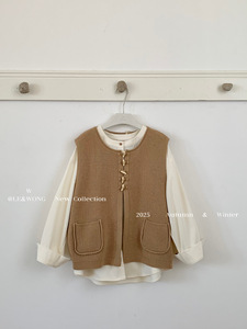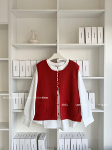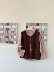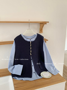 W家 早秋穿搭一整套女装胖mm衬衫叠穿牛角扣马甲韩系高级感两件套