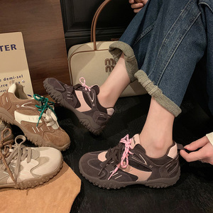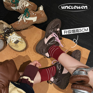 牛皮版~5cm增高德训鞋女香缇卡新款百搭阿甘鞋子厚底休闲运动鞋