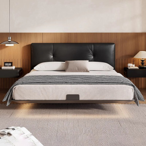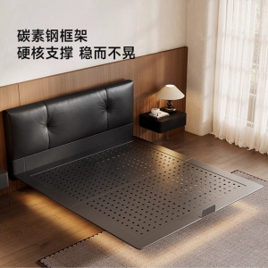 意式极简悬浮真皮储物床碳素钢床架小户型主卧双人软包床超薄床头