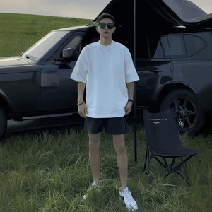 小领口纯色短袖男夏季cleanfit黑色t恤潮牌重磅美式纯棉打底衫男
