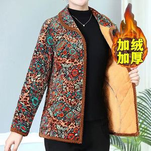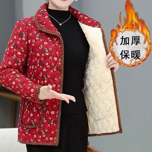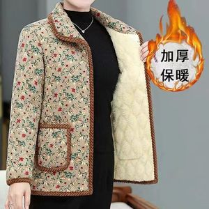 新款中老年女式外套妈妈棉袄秋冬装时尚短款加绒保暖碎花棉服跨境