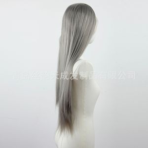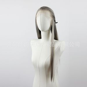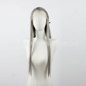 跨境新品13x4大蕾丝假发三尖高层次中长发鲻鱼头银灰色美人尖