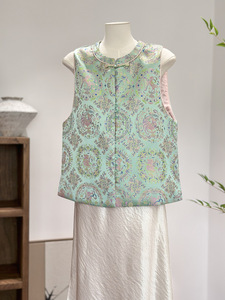 十二生肖全家福宋锦新中式国风马甲仿真丝减龄圆领背心马夹秋季新
