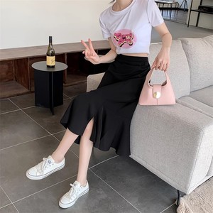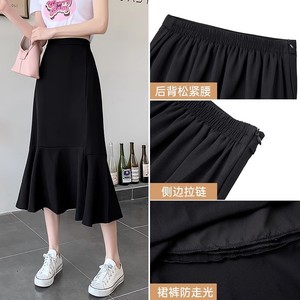 考蜡崽崽中长款鱼尾半身裙春季新款大码梨形高腰显瘦黑色a字裙
