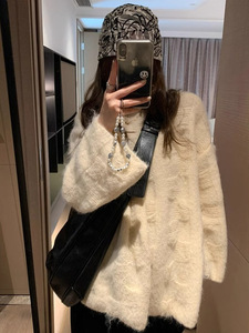 松弛感慵懒风中长款毛衣女2025冬季宽松破洞设计感遮屁股针织上衣