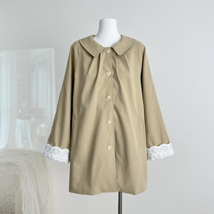 长岛恋人 袖口花边拼接中长款风衣外套女秋韩系翻领大衣