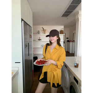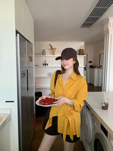 im向 南韩艺术生’百搭设计感不对称长袖上衣女宽松门襟绑带衬衫