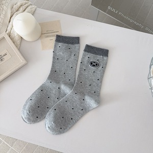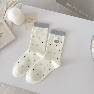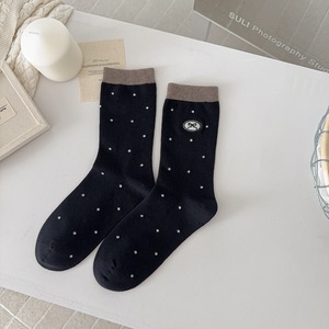 秋冬新品袜子女秋冬韩系ins棉波点刺绣蝴蝶结中筒袜百搭女袜潮袜