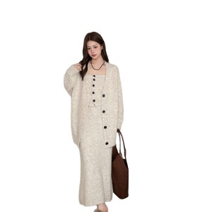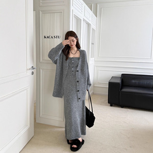 欧美外贸套装女2025秋冬时尚气质优雅针织开衫+抹胸阔腿裤三件套