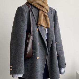 灰色呢子大衣女2025秋季小个子新款感韩系短款西装毛呢外套