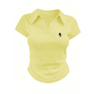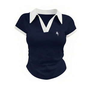速卖通秋季外贸新款 T-Shirts 女款休闲时尚骑士印花翻领短袖T恤