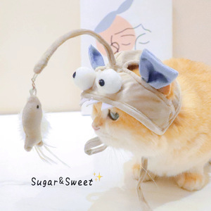 灰眼大眼鱼头头戴逗猫棒