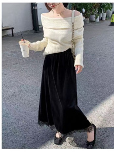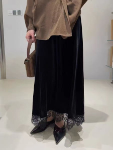 0907-160秋季高品质真丝绒精品A字裙长裙半身裙女装