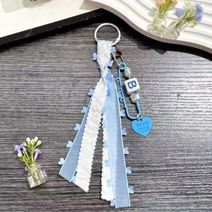 高级感diy蕾丝飘带字母爱心钥匙扣 少女心包包挂件创意小礼品批发