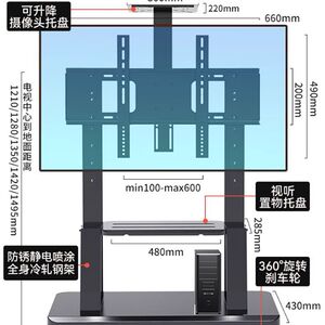 加厚可移动电视机落地支架带轮适用小米海信免打孔一体机推车适用