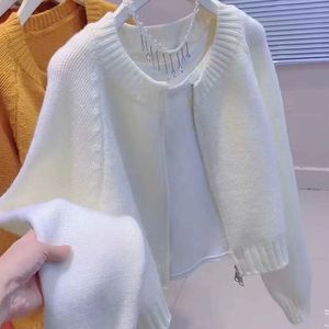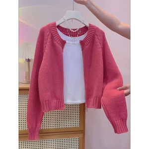 漂亮宽松今年新款针织开衫外套短款纯色流行拉链好看圆领毛衣白色