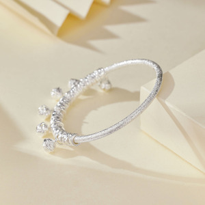 银美碎银盘缠手镯六六大顺铃铛文艺轻奢新中式国风镯子生日送女友
