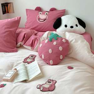 可爱ins风A类卡通全棉床上四件套纯棉被套床单宿舍三件套床上用品