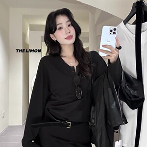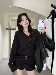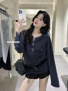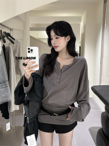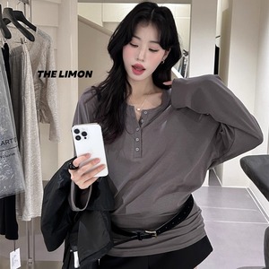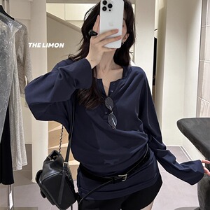 THE LIMON柠檬绿茶2025秋季百搭松弛感纽扣韩系长袖T恤女韩系上衣