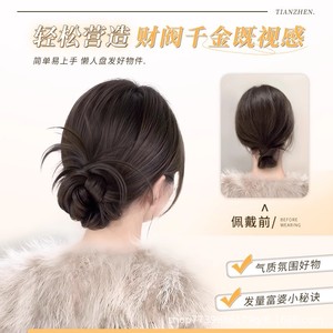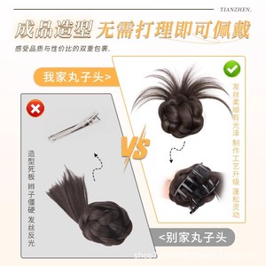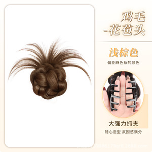 低扎鸡毛丸子头假发抓夹花苞头假发发圈仿真发自然盘发神器假发包
