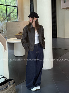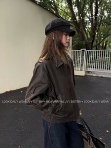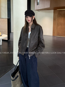 JVV十三行2025秋季新款复古做旧PU皮衣拉链翻领夹克外套女潮71293