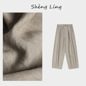 石磨纹路高密灯笼裤比利时进口亚麻阔腿休闲裤老钱SL50654