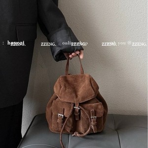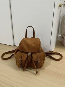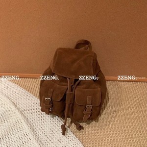 2597-145 迷你绒面多口袋设计翻盖抽绳小背包
