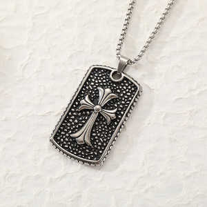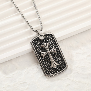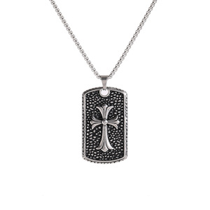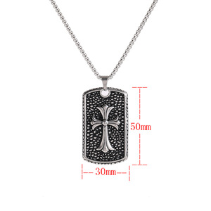 新品军牌十字架项链复古吊坠不锈钢欧美花纹项链街头潮流项饰吊牌
