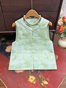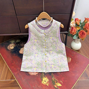 2025早秋新款新中式国风提花圆领马甲盘扣清新外搭休闲坎肩马夹