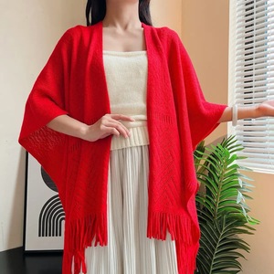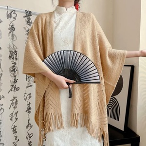百搭旗袍披肩清新文艺流苏厚空调披肩镂空外搭配旗袍开衫白色披肩
