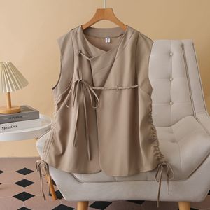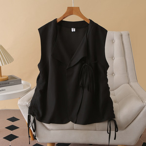 200斤胖妹妹秋装新款大码气质时尚系带马甲上衣女装外搭坎肩8233