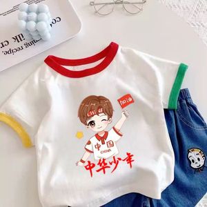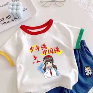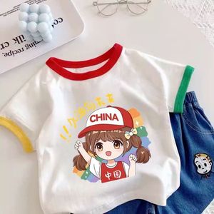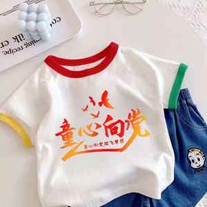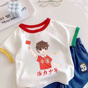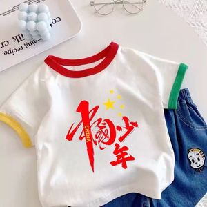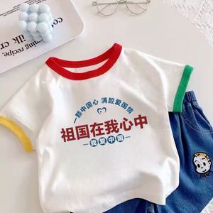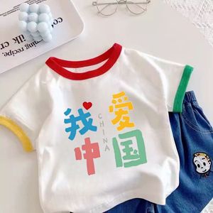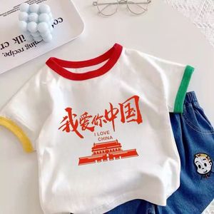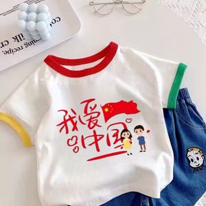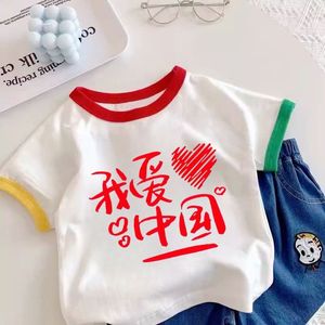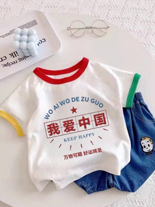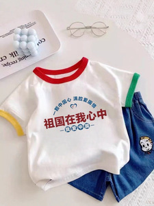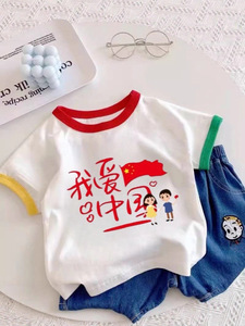 儿童国庆节男女童小学生运动会啦啦队短袖我爱你中国撞色表演服装