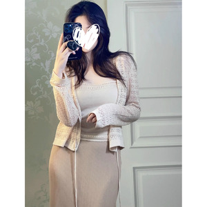 2025夏季新款套装法式纯欲微透针织薄款吊带开衫半身裙女三件套装
