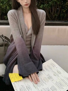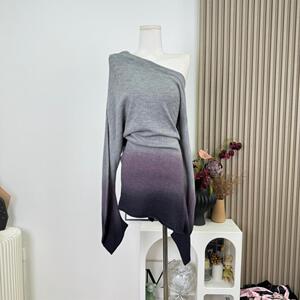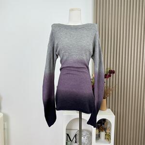 【告白】jojo私服线 渐变紫灰羊毛毛衣女香蕉袖收腰上衣外穿