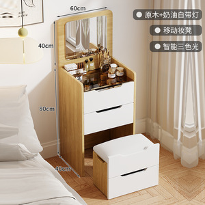 60cm原木拼白色-带灯+翻盖镜+隐藏妆凳 -889