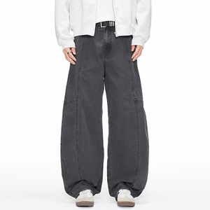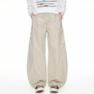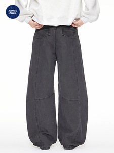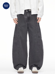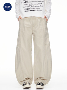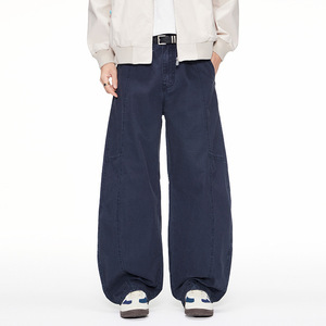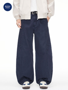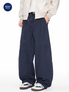 沐丘男装∣秋季新款美式弯刀水洗珠帆布工装裤男女宽松阔腿休闲裤