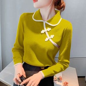 2025秋季黄色毛季显瘦打底衫春秋复古中国风女式改良旗袍针织上衣