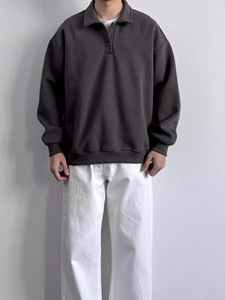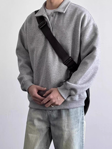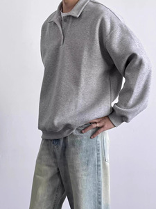 日系简约高级感POLO衫卫衣纯色宽松复古慵懒氛围感翻领长袖上衣潮